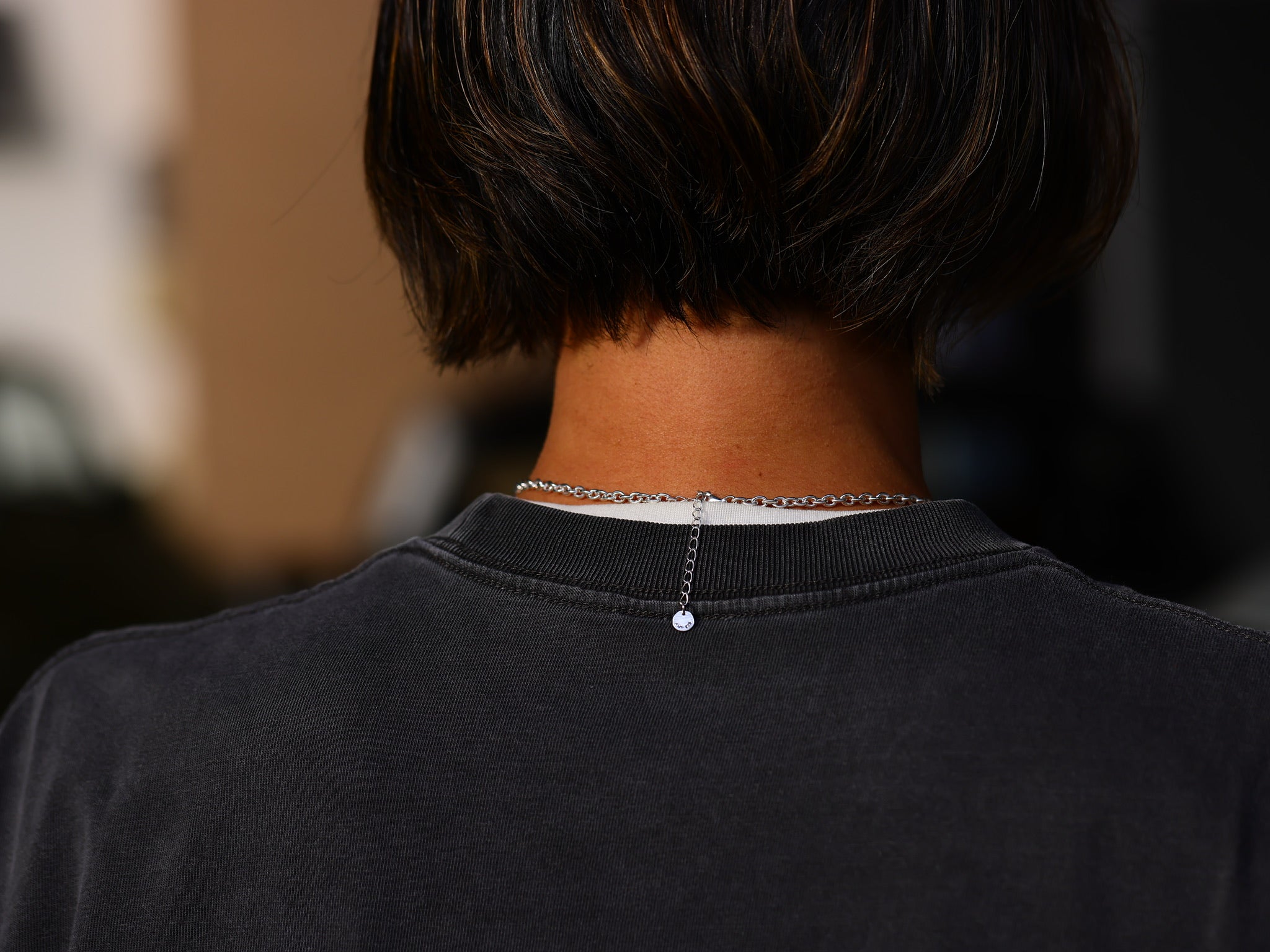 全長50cm+5cmのⒶチャーム付きテールチェーン仕様により 首元のフィット感を自在に調整可能。