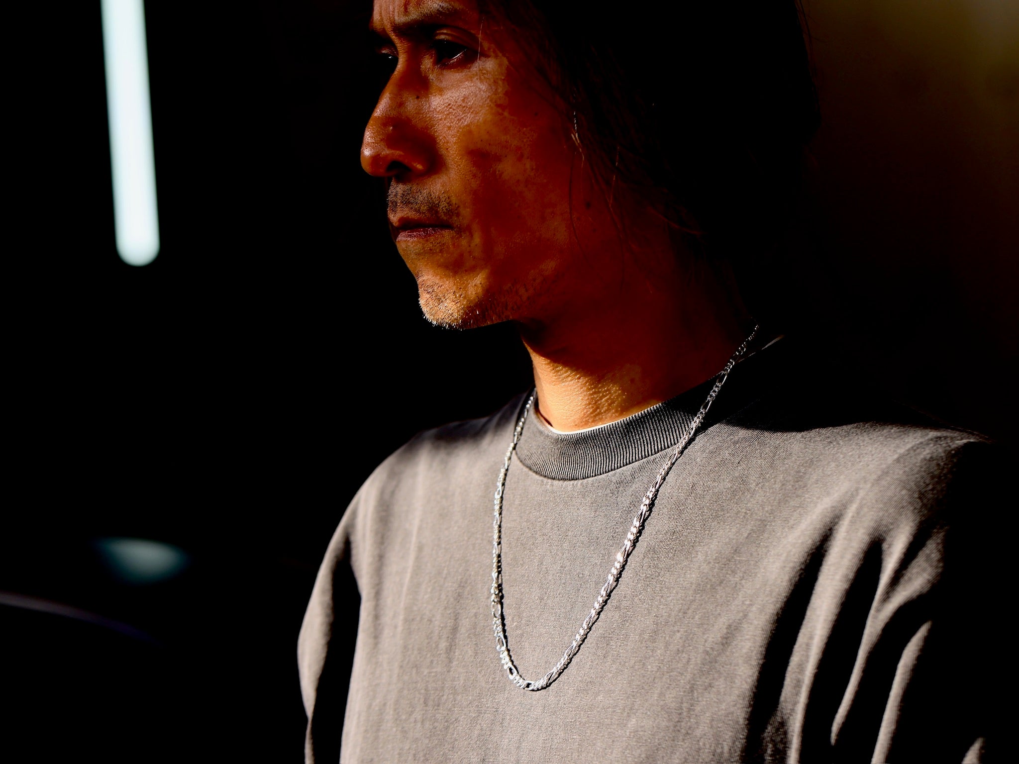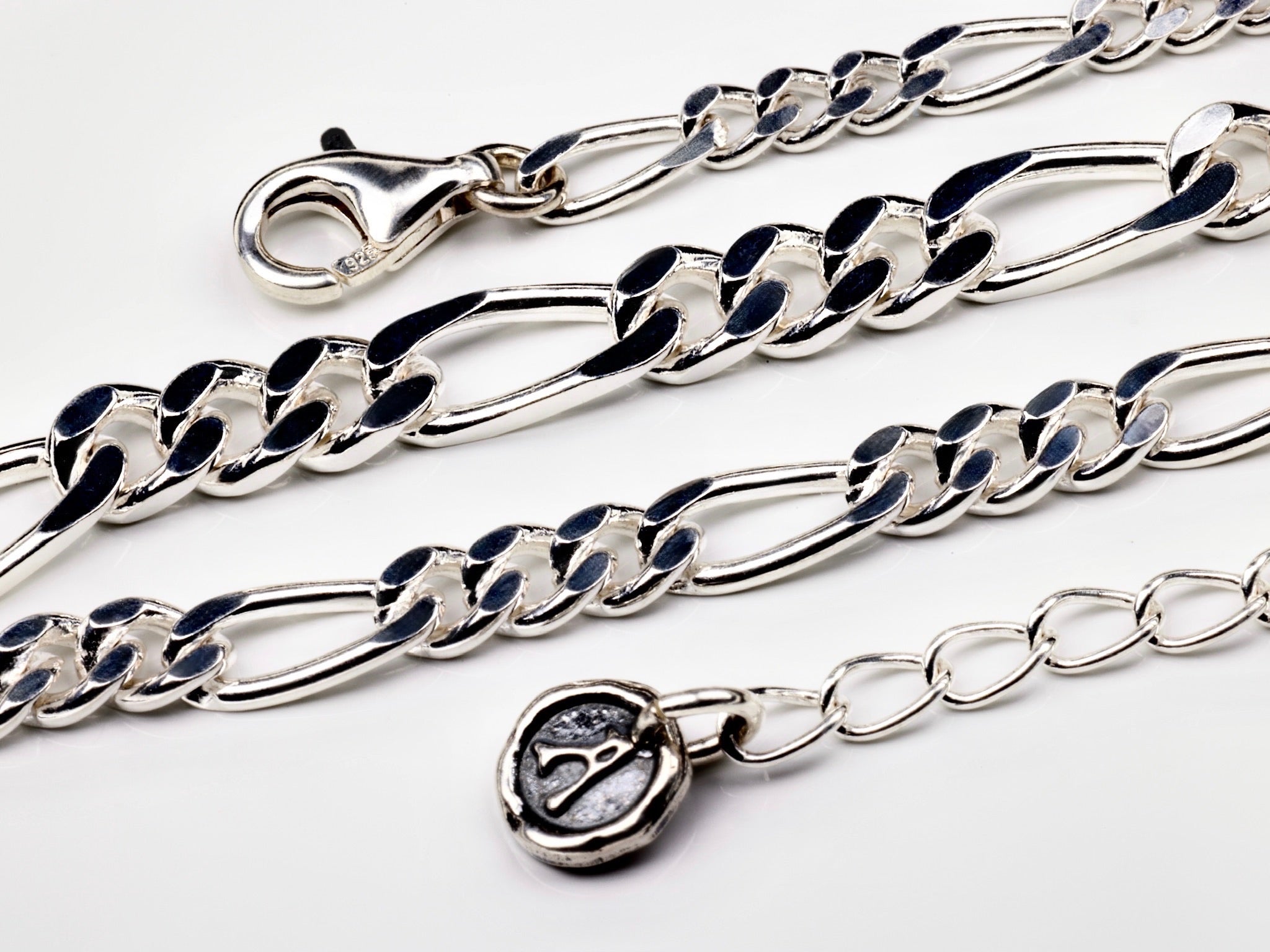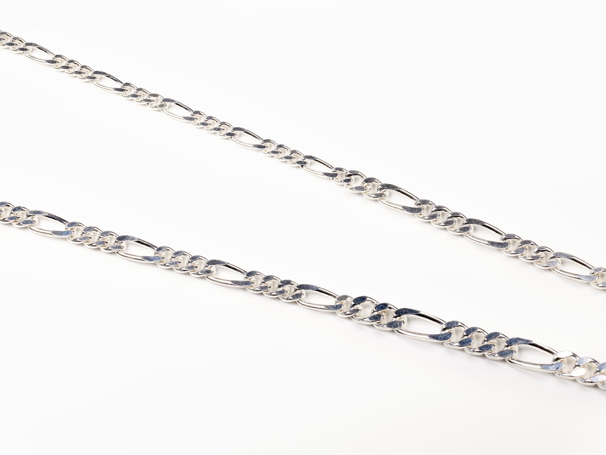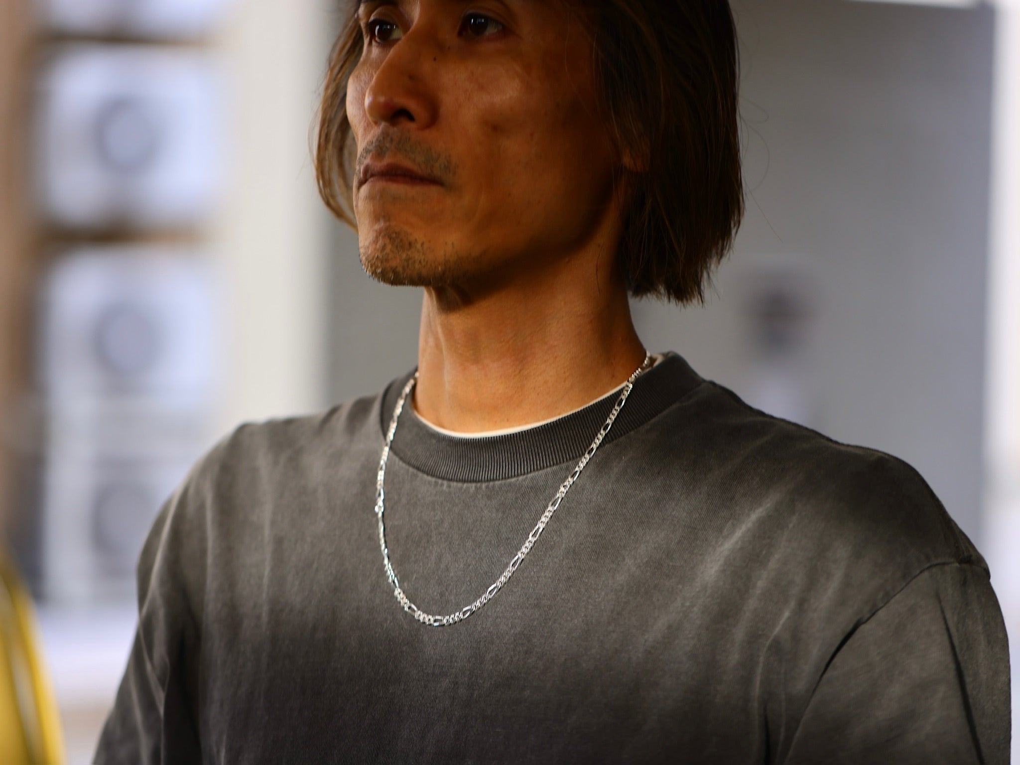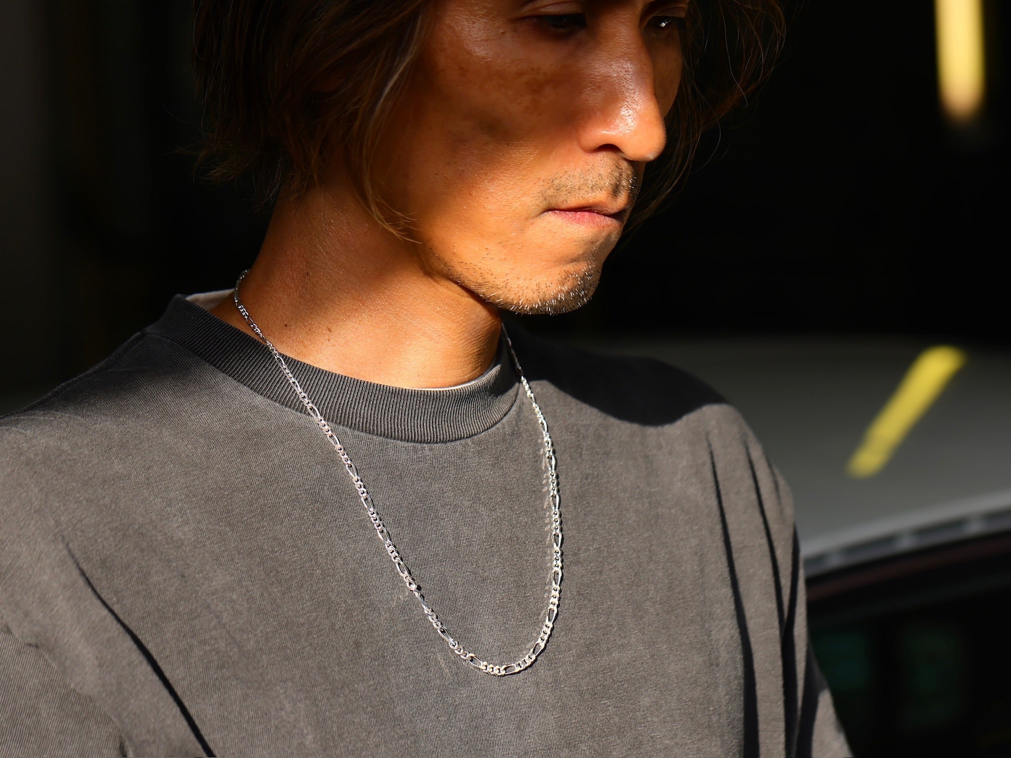 シームレスに繋がれたフィガロチェーンは、リズム感のあるデザインと光の反射で立体感と重厚感を演出。
