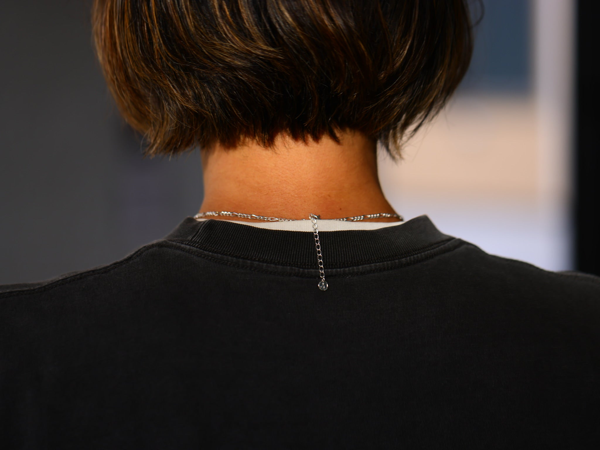 全長 50cm+5cmのⒶチャーム付きテールチェーン仕様で、首元の長さを自在に調整可能。