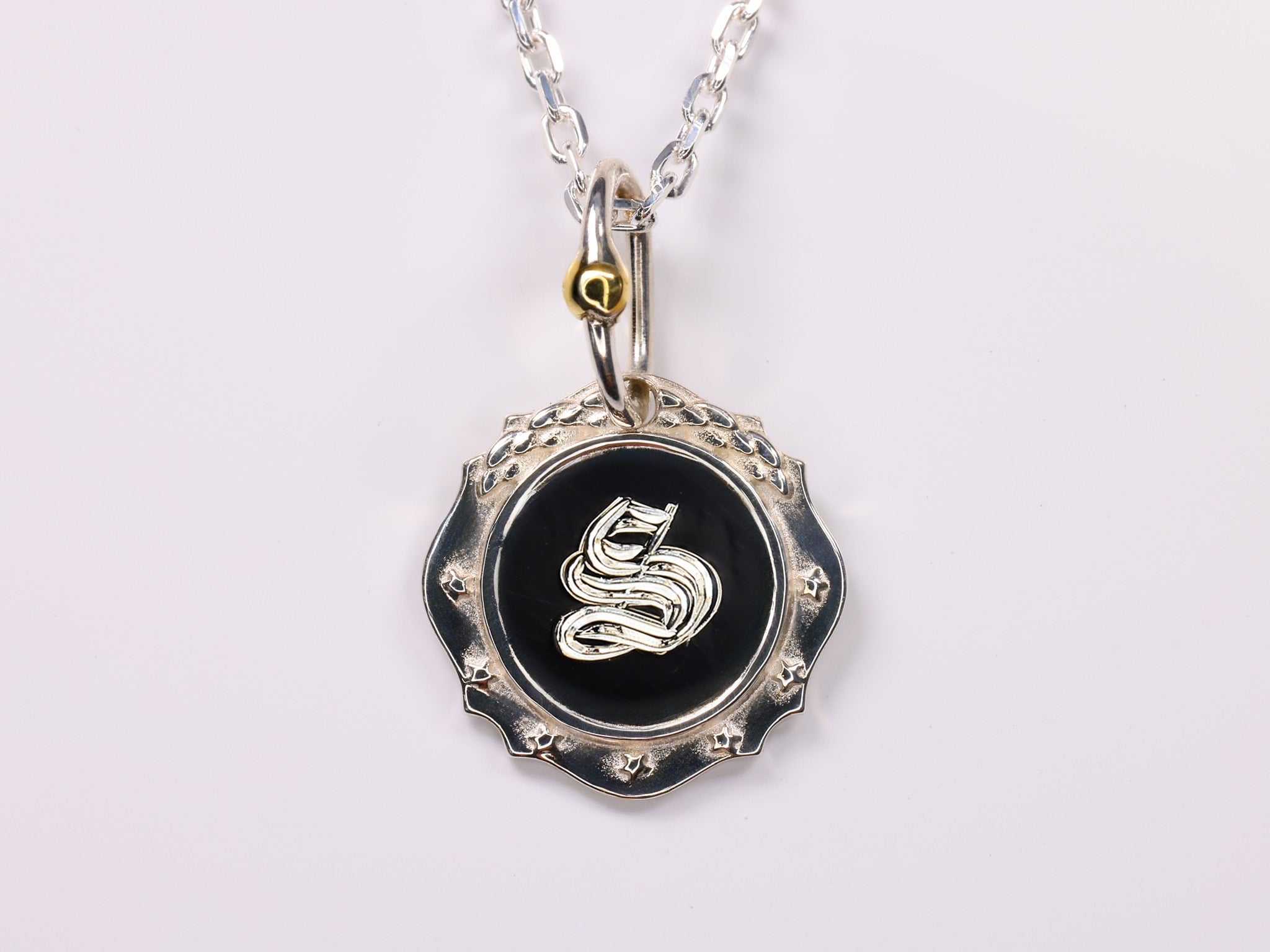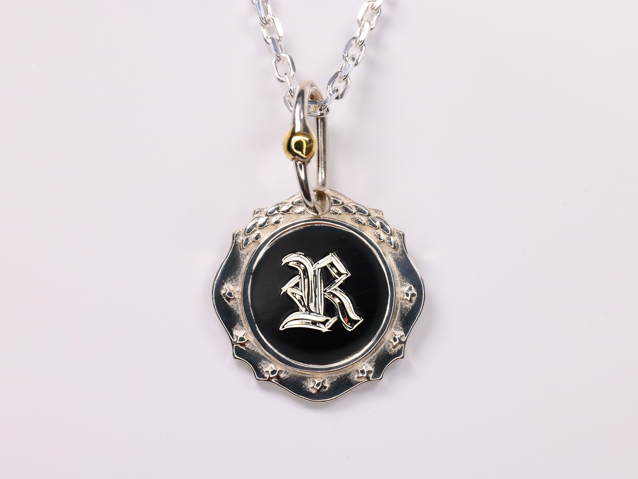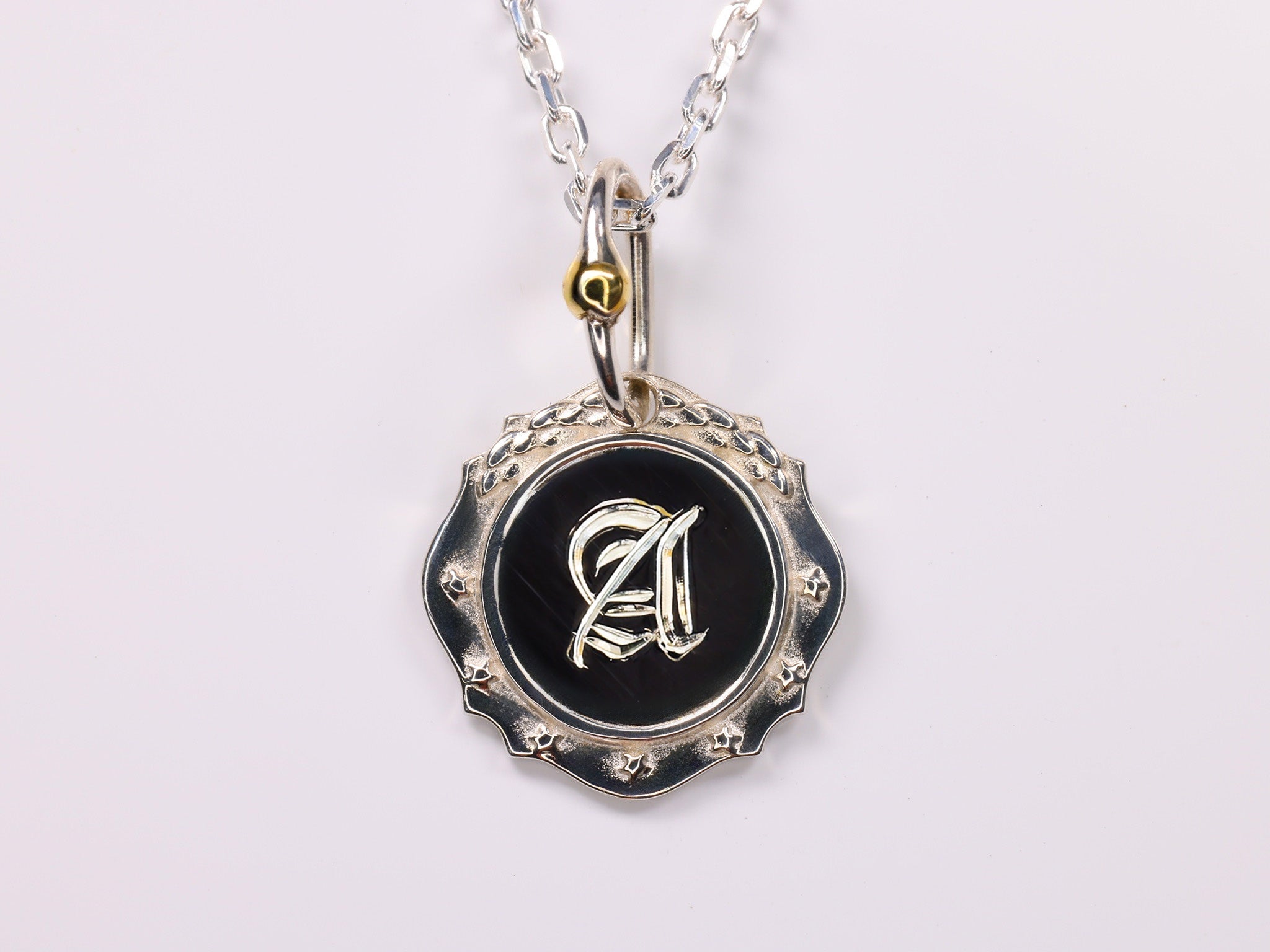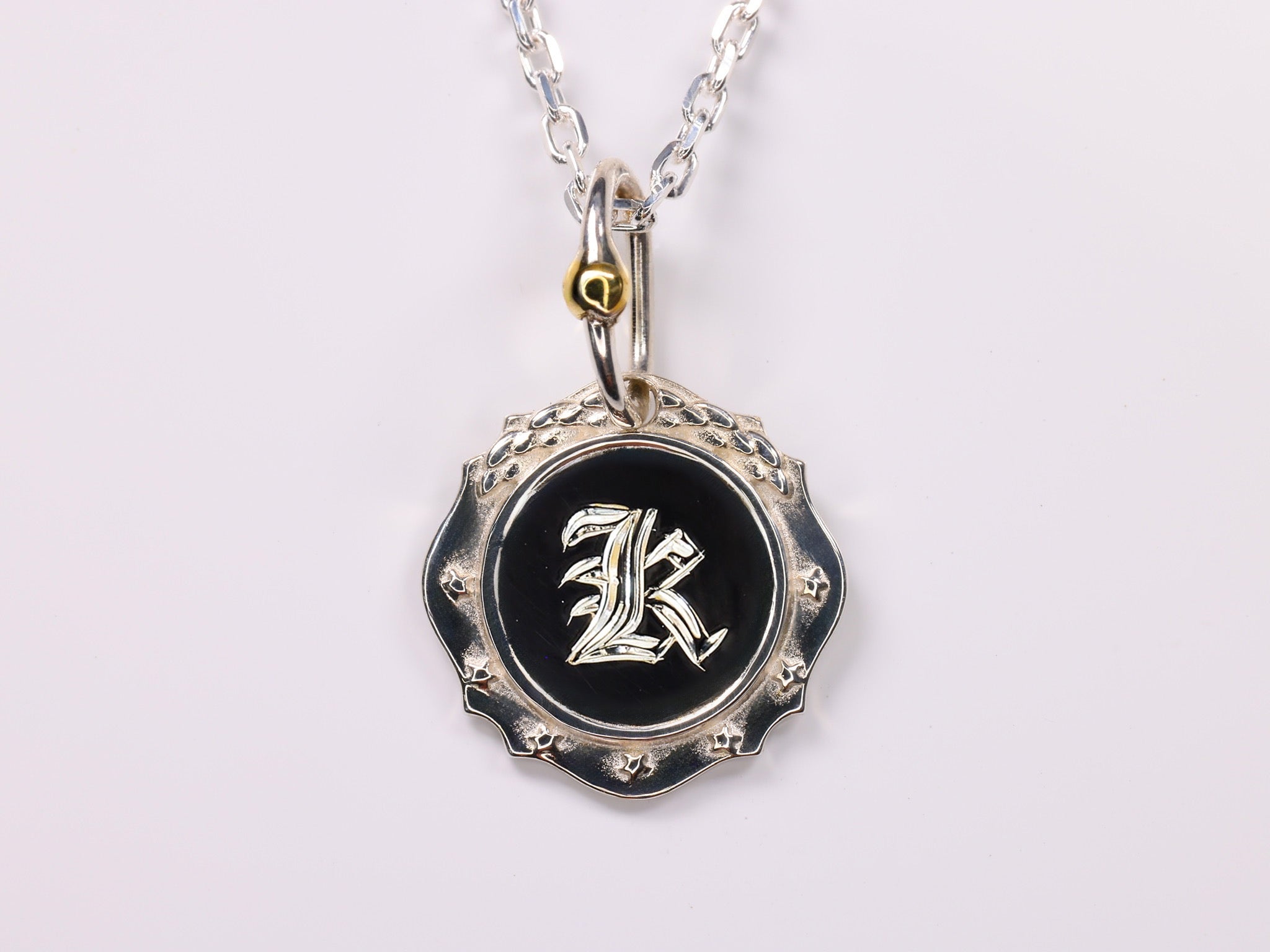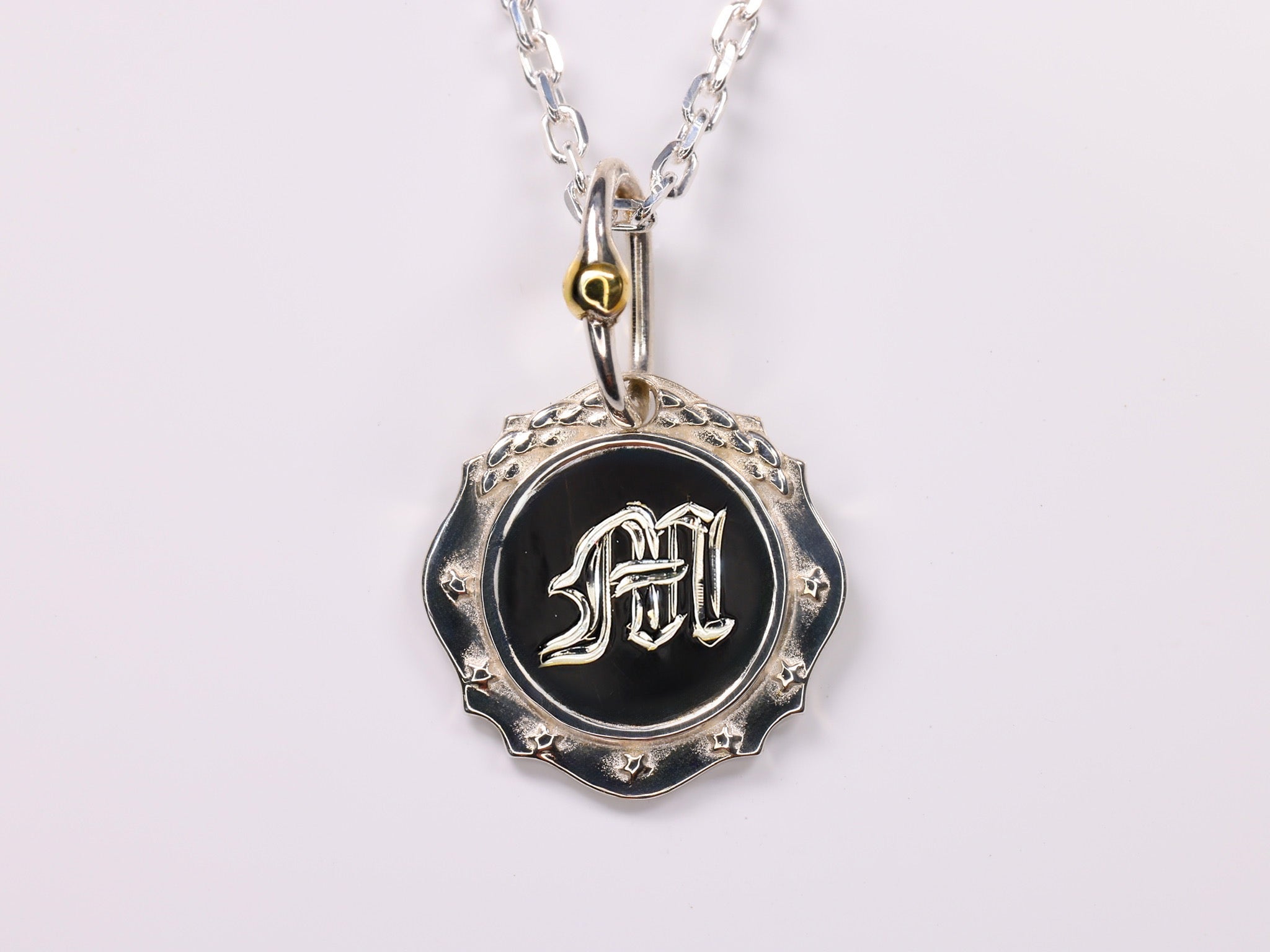 月桂樹のレリーフと7つの星を外周にあしらったシルバー925製クラシックチャームに お好きなイニシャルを熟練の職人が手彫りにて施します。
