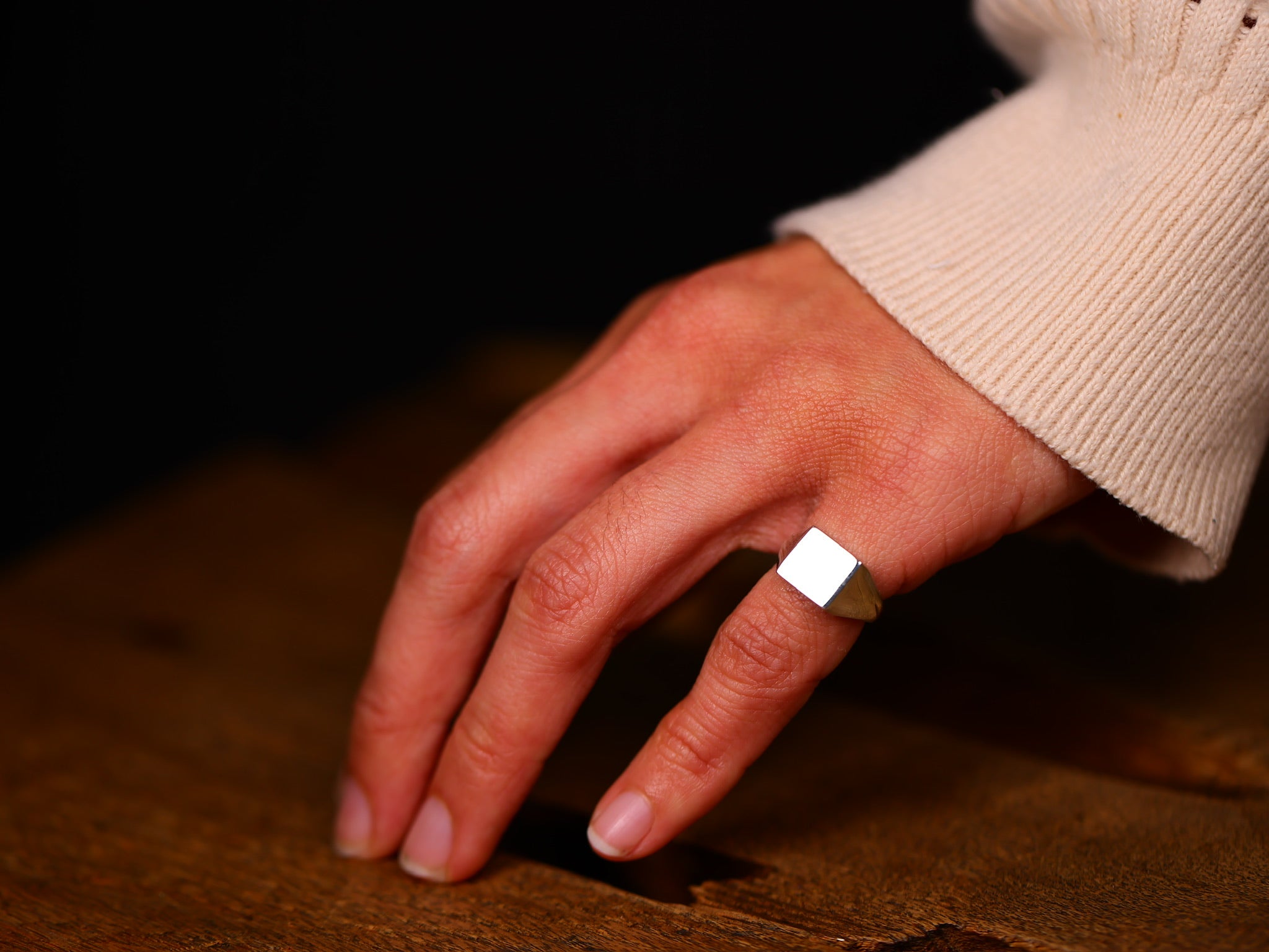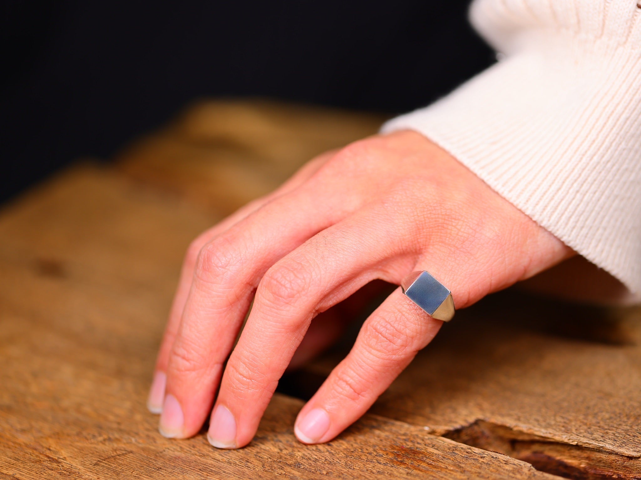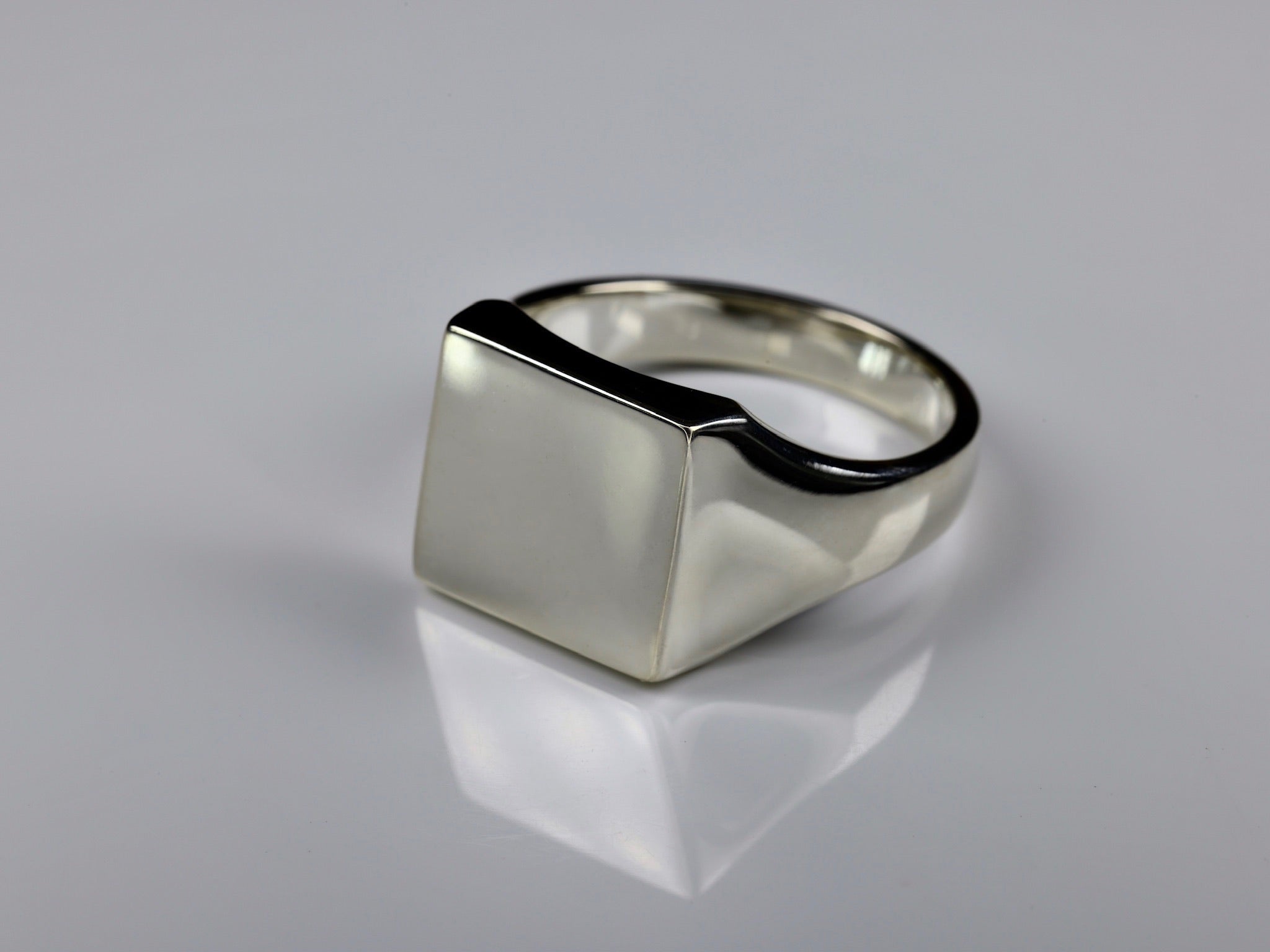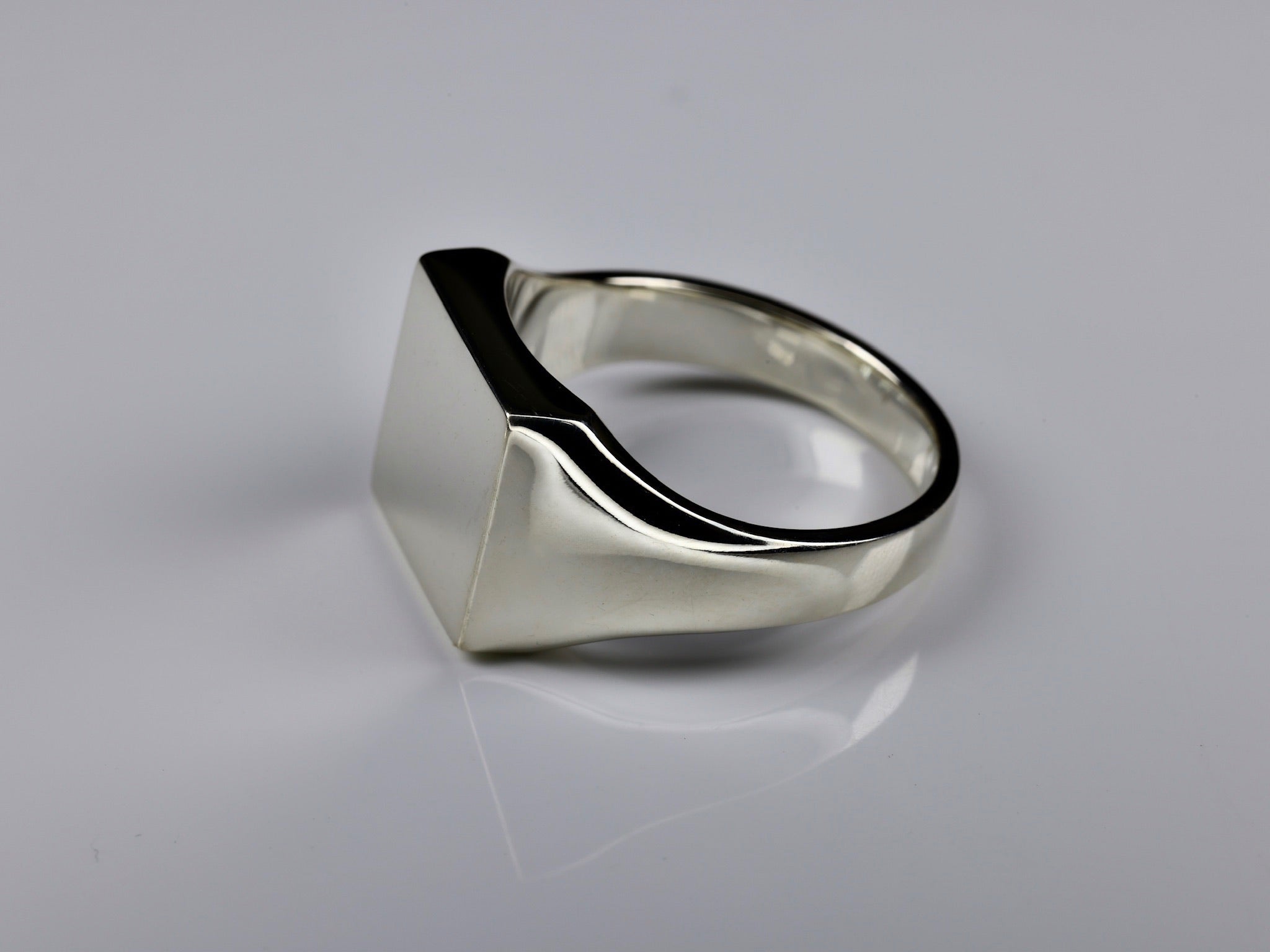 緩やかに隆起したベゼル(上部の台座)が特徴的なシンプルで上品な シルバー925製ポリッシュ クッションリング