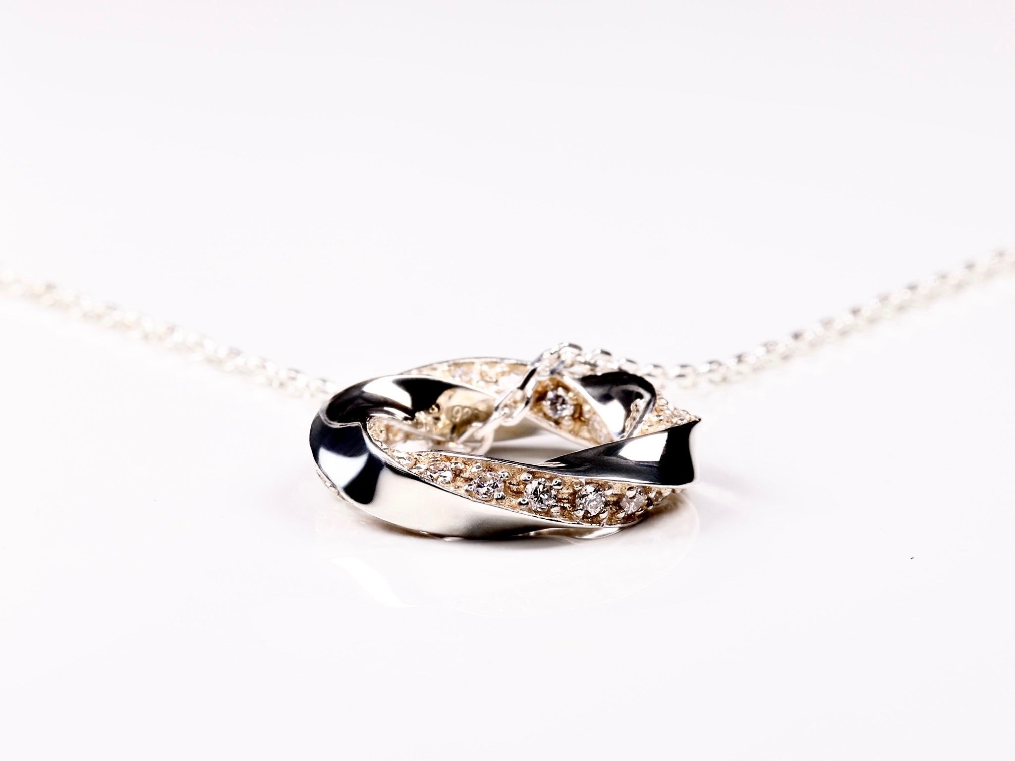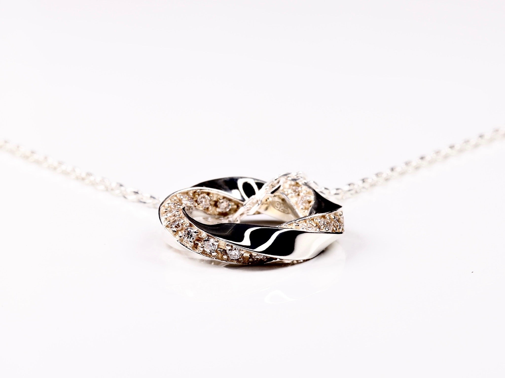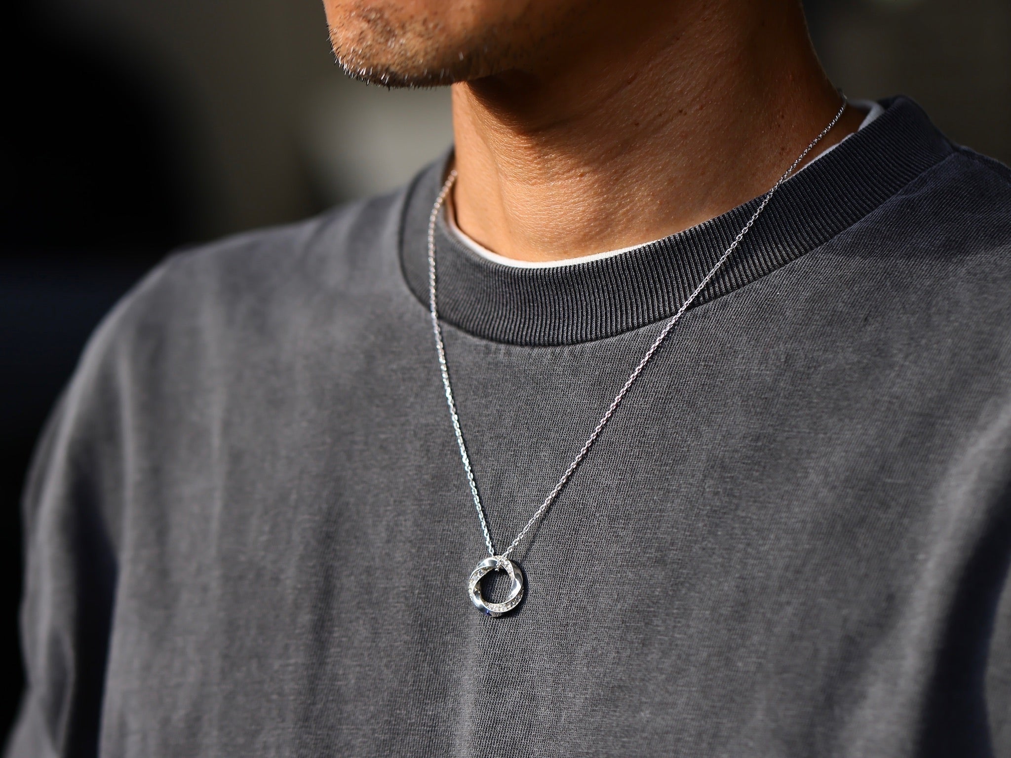 1.4mm 0.012ctのラボ グロウン ダイヤモンドを贅沢に39石 合計0.468ct.セッティングした フルハンドメイドのシルバー925製ツイスト ホイールネックレス